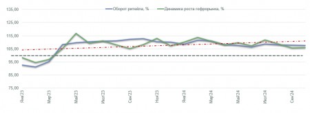 Потребительская активность в России в целом продолжает демонстрировать позитивную динамику. По данным Росстат оборот розничной торговли за 10 месяцев вырос на 7,5% по сравнению с тем же периодом 2023 года, с наибольшим видимым приростом темпов в первом квартале текущего года, что коррелирует с инфляционными ожиданиями на 2024 год на начало периода.