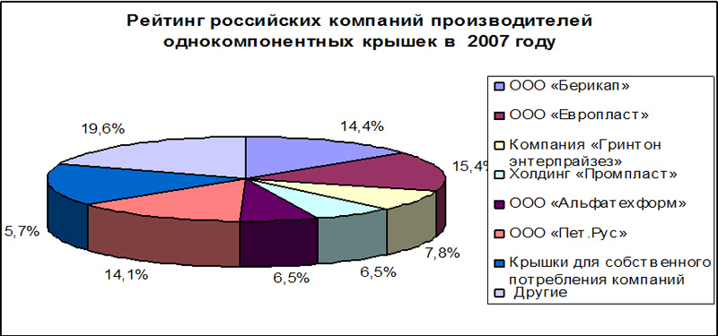В целом, рынок однокомпонентных крышек вполне сформировался, существует достаточно большое количество производителей. Рост внутреннего производства однокомпонентных крышек в 2007 году составил 16,1%.