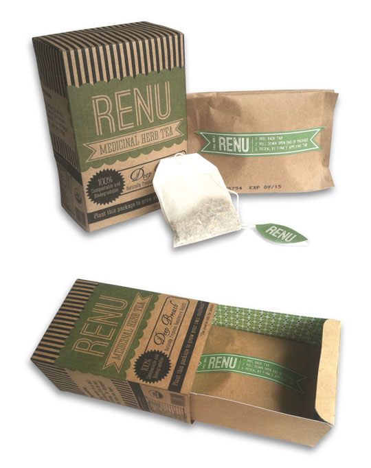 Данный образец, разработанный Дэниэлом Станкусом (Daniel Stankus) из Бруклина, штат Нью-Йорк (США), это стопроцентно пригодная для утилизации в компосте упаковка для чая, изготовленная исключительно из биоразлагаемых материалов, включая формованный фиброкартон, содержащий семена лекарственных растений.