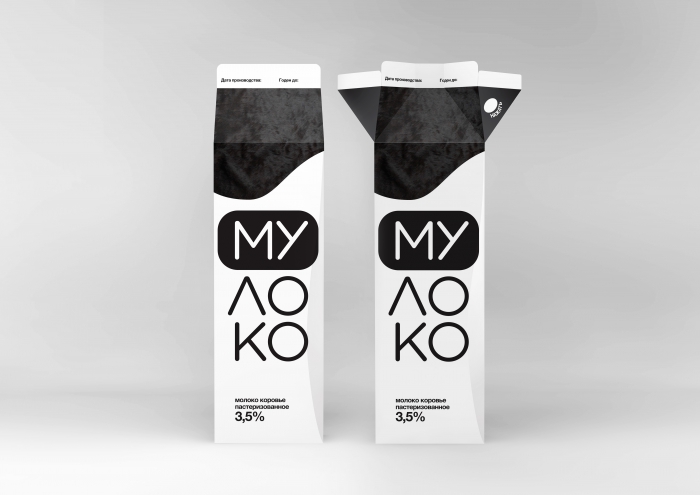 Большой плюс: эта упаковка заметна на молочной полке. Черное с белым – у нас еще не избитое сочетание, и на общем фоне хорошо выделяется. В названии, самом по себе, я особой игры смыслов не вижу, но эта необычность первого слога, «му» вместо «мо» опять же бросается в глаза. Так что шансы есть. Если, конечно, производитель не решит, что это молоко – некий эксклюзив, которое нужно непременно продать по «премиальной» цене. Это что касается молока. А вот что касается других продуктов, то возникают серьезные сомнения. Визуальный идентификатор такого размера с явным указанием на молоко, будет весьма загадочно смотреться на упаковке других молочных продуктов. Сметану с надписью «Мулоко», потребитель, скорее всего, будет избегать – когда на клетке со слоном написано «буйвол», то лучше «ну его на фиг».
