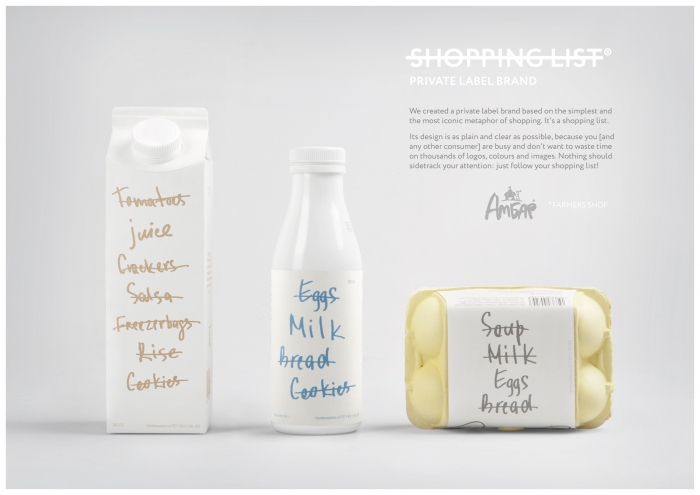 Это бренд для активных молодых людей, которые ценят свое время и деньги. Список покупок — полезная для них вещь, ведь они хотят тратить на шоппинг меньше времени и денег и покупать только то, что им действительно необходимо. Дизайн упаковки напоминает список покупок, старательно составленный специально для них. Автор идеи — арт-директор Depot WPF Александр Загорский.