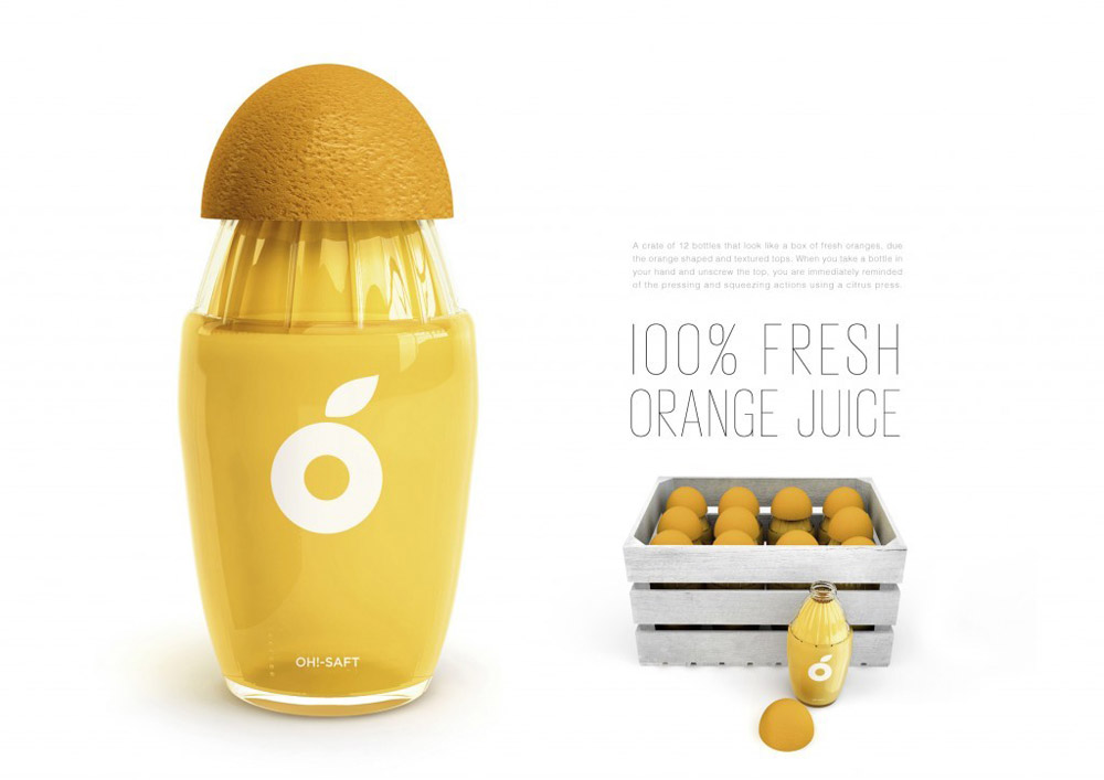 Серебро получило агентство Leo Burnett Germany за дизайн упаковки апельсинового сока Oh!Saft. Проект под названием “Squeeze Bottles” (выжатые бутылки) включает разработку бутылок с оригинальными крышками, напоминающими половинки апельсинов. Бутылки помещены в ящики по 12 штук. Благодаря крышкам они похожи на ящики с настоящими апельсинами. При ближайшем рассмотрении бутылка выглядит как ручной пресс для выжимания апельсинов.