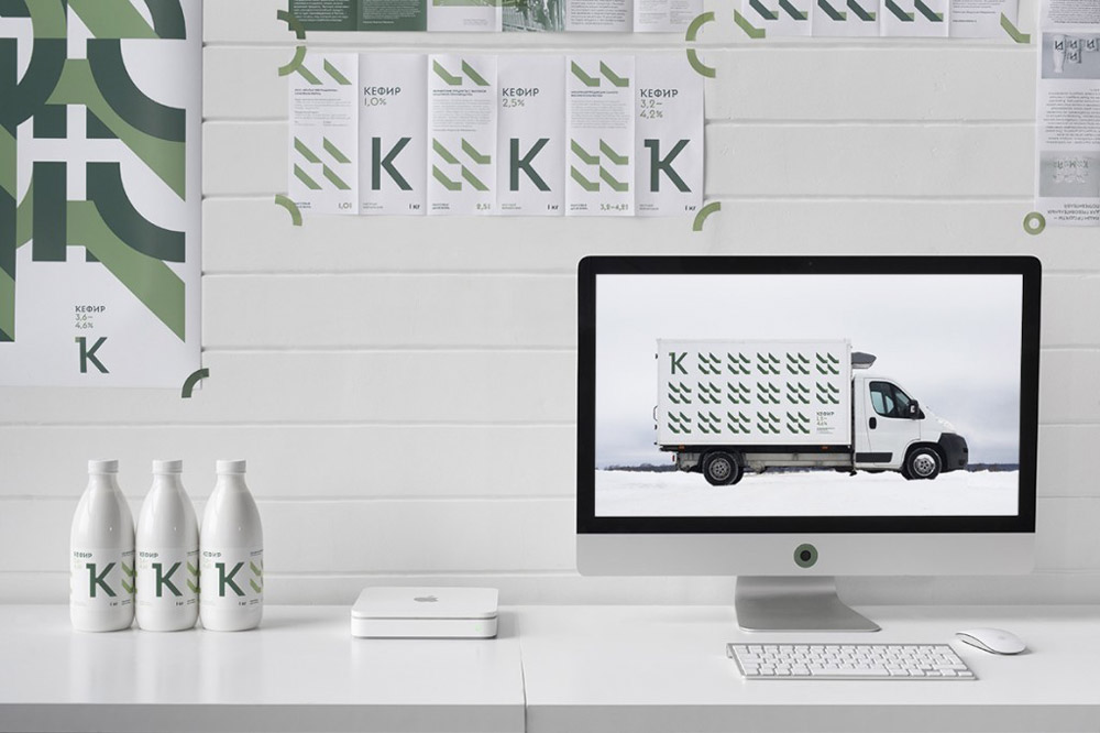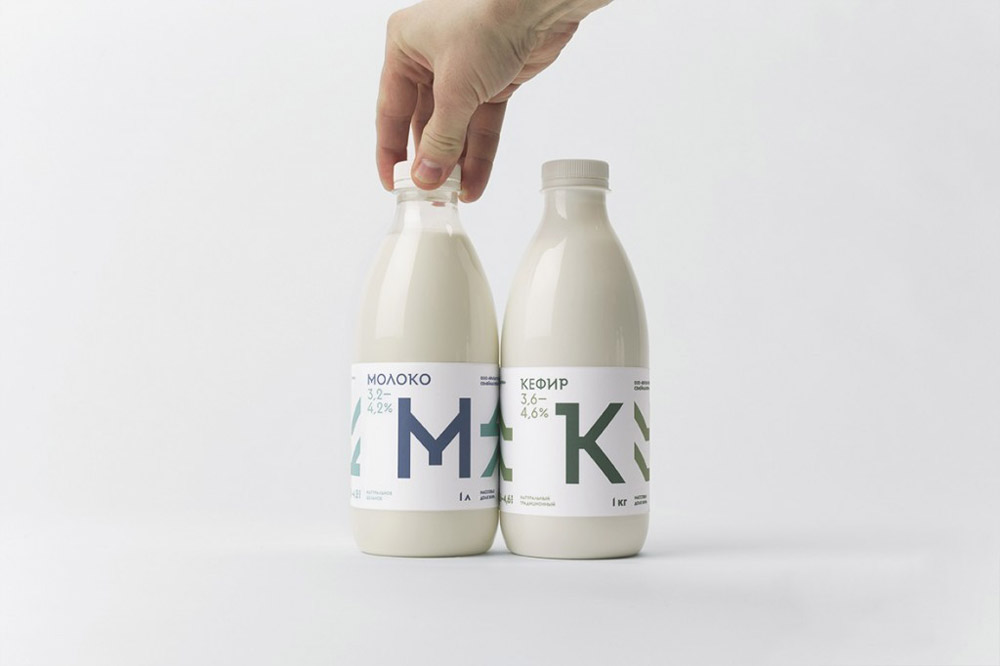 Разрабатывая бренд, дизайнеры отказались от привычных для российского молочного рынка визуальных решений. Они сделали упор не на логотип и литературный сюжет, а на содержание упаковки, отражённое в чистом и лаконичном дизайне. Идея построена на типографике: инициальные, первые буквы продукции являются главной частью дизайна.