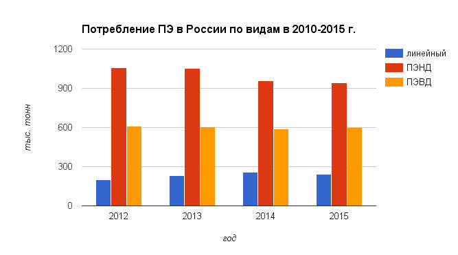 Потребление ПЭ на Украине в 2015 г. заметно снизилось, составив 210 тыс. т, и было полностью обеспечено импортной продукцией (основные поставщики - Россия и Саудовская Аравия).