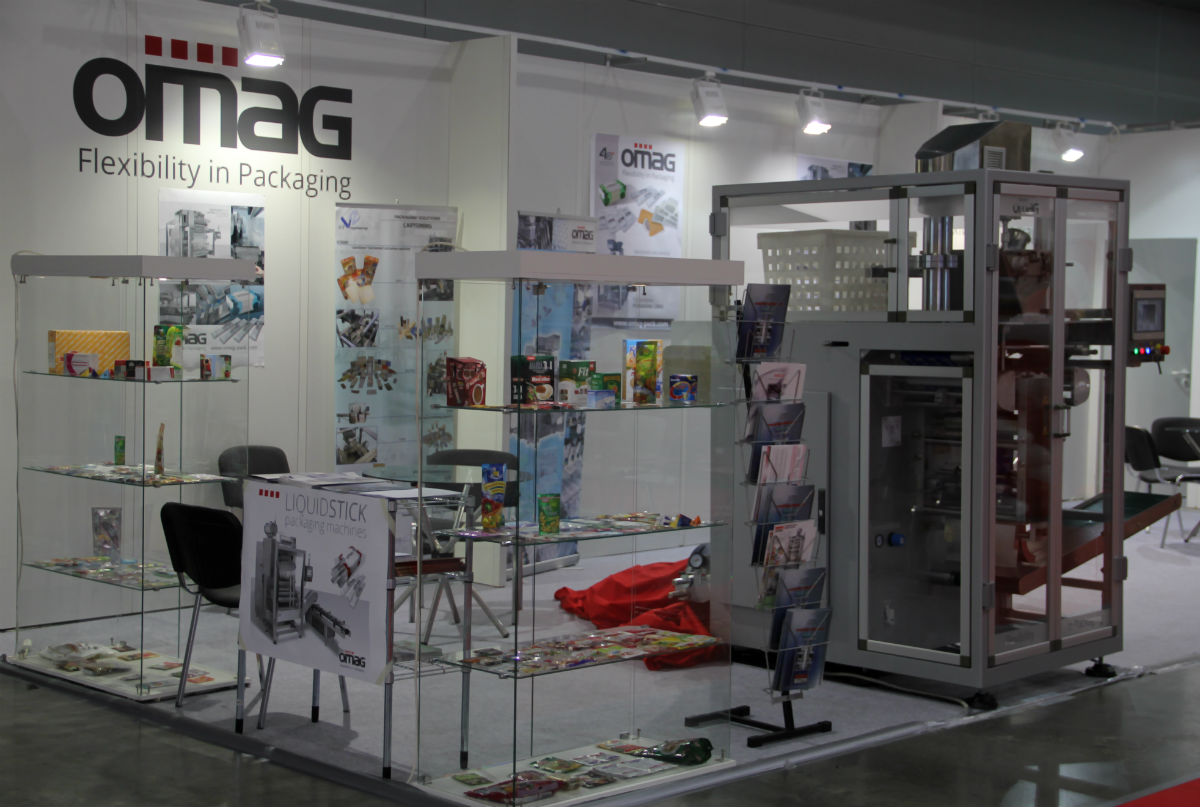 Вообще представительство компаний с Апенинского полуострова на выставке было велико. Чью-то технику представляли российские и зарубежные поставщики, некоторые компании были представлены на сводном стенде объединения UCIMA, кто-то выступал как самостоятельный участник. Например, наш старый знакомый, хорошо известная еще с советских времен компания OMAG. Правда технику, которую представляли на стенде – автоматы: C3V/2, формирующий в два ручья пакеты «саше» наложением полос материала и DIVA, образующий и наполняющий «стики» в пять ручьев – мы уже видели раньше.