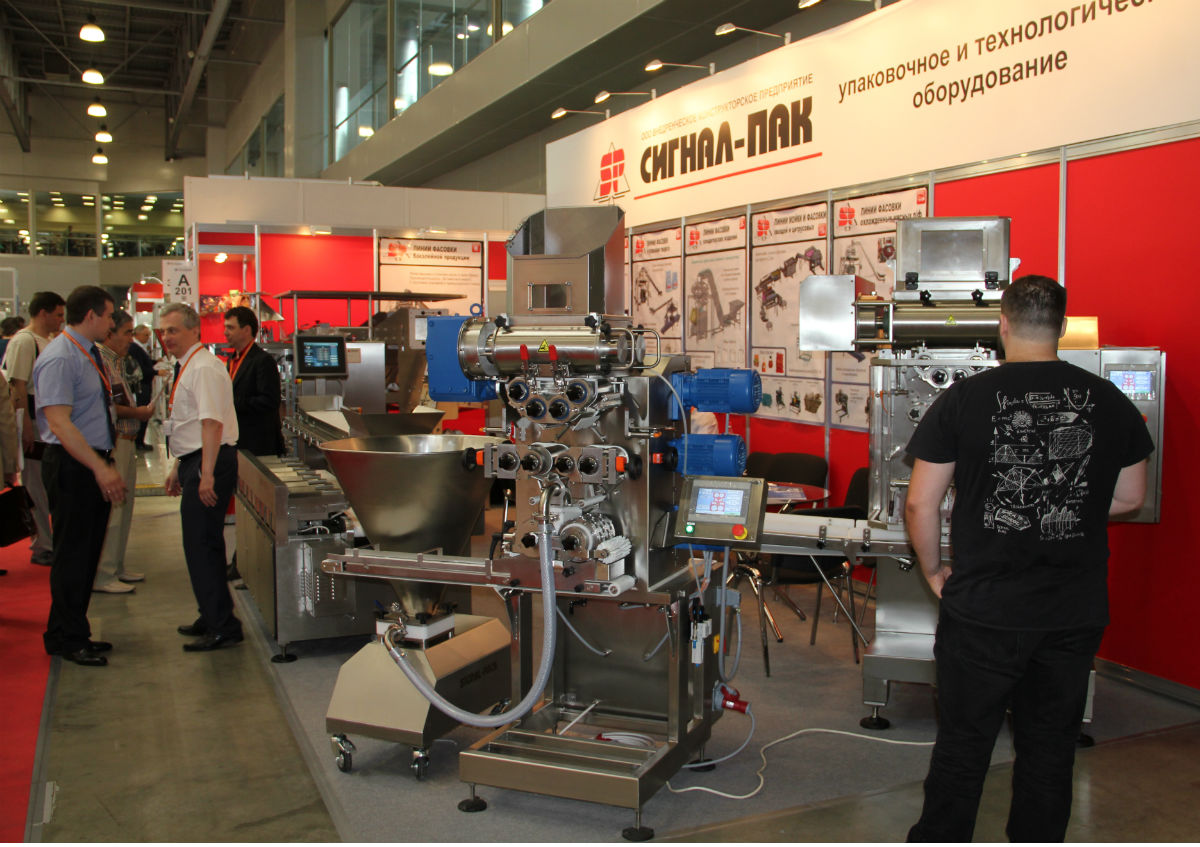 На стенде «Сигнал-Пак», кроме автоматов для производства пельменей, были две единицы упаковочной техники. VFFS-машина М3А в исполнении под пакеты с проваркой углов (стабило-бэг) впервые показана на московской выставке. Главная же новинка от компании: комбинационный дозатор СП16-2L – первый в нашей стране дозатор с линейным расположением весоизмерительных емкостей. Предназначен для формирования доз продуктов с колеблющейся массой каждого куска, например, мяса.