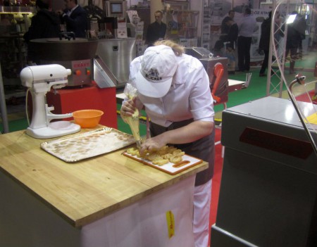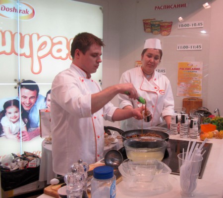 Как известно, выставка – это мероприятие по продвижению продукции на рынке, в данном случае, на рынке нашей необъятной страны. Просто походив по разным залам и павильонам «Продэкспо», легко можно заметить, что желающих продвинуться на нём чрезвычайно много. Всюду кипение и жизнь, даже под лестницами эскалаторов теснились стенды, ломящиеся от снеди. Лозунгом выставки вполне могло бы быть что-то вроде «Всегда и везде, слава, слава еде!». Заходим в павильон 7.2. Видим разные вещи: здесь одновременно собрались Салон мороженого, упаковщики и упаковочные полиграфисты – экспозиция «Упаковочные решения для пищевой промышленности – выставка „Продэкспопак”», а также салон оборудования. Пахнет печеньем. Последние штрихи. Это стенд саратовской фирмы «Восход», на котором расположилось выпускаемое заводом оборудование: машина тестомесильная «Прима-40», современная настольная двухскоростная тестомесильная машина с возможностью интенсивного замеса, со спиральным месильным органом, центральным отсекателем, стационарной цилиндрической дежой из нержавеющей стали емкостью 40 литров, тестоокруглитель «Восход-ТО-8 Скаут» и другая техника для выпуска вкусной кондитерской продукции из теста.