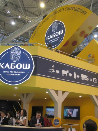 Идём дальше. Павильон «Форум». Здесь соседствовали компании, выпускающие бакалейные изделия, зернопродукты, приправы, специи, а также производители молочной продукции и сыров, овощей, фруктов и детского питания. Наше внимание, в первую очередь, привлекли, сыры. Известно, что главная проблема отечественного сыроделия – нехватка качественного сырья – молока. Недешёвое удовольствие – качество. Тем не менее, есть и в России компании, которые задают себе в этом отношении довольно высокую планку. Вот стенд компании «Кабош» из Великих Лук, производителя особых сыров по особой рецептуре.