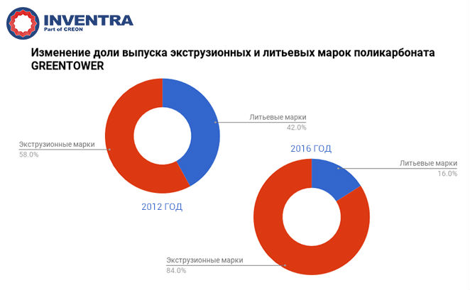 По данным за прошедшие три года, ПК-гранулят марки GREENTOWER занимал более 76% объема российского рынка, на долю Sabic пришлось 17%, Covestro – 5% и 2% на прочих производителей, продолжил г-н Трофимов. За последнее время разделение рынка между ключевыми импортёрами изменилось в пользу Covestro, которая заняла лидирующее положение относительно Sabic.
