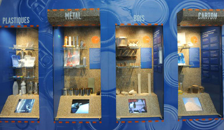 Тематический раздел «Пищевая упаковка, новшества в коробке» располагается в отделе «Материалы». К сожалению, при высоком качестве оформления экспонатов Музея, в целом, отдел EMBALLAGES (упаковка для пищевых продуктов) не произвел впечатления. Ожидалось увидеть нечто более интересное. Наверное, это можно было бы объяснить подробными пояснениями на планшетах – на французском языке. Жаль, прочитать их не удалось. Тем не менее, экспонатами практически не представлена история упаковки во Франции. А ведь она очень богата. Взять хотя бы изобретение консервирования пищевых продуктов, сделанное по заданию Наполеона в самом начале XIX века.