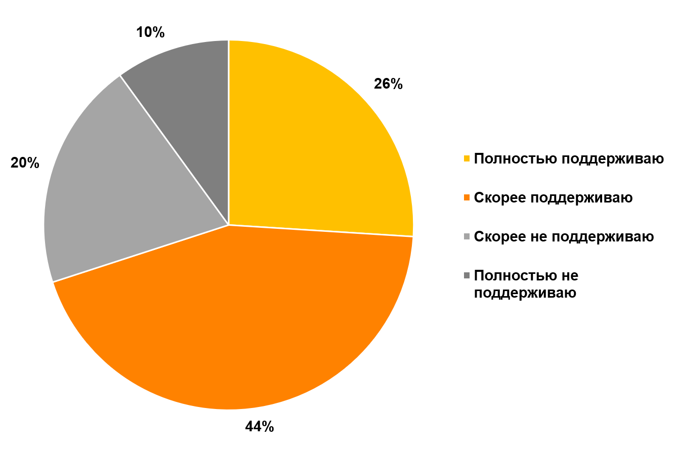 Итак, первый вопрос касался самой идеи раздельного сбора отходов и отношения к ней россиян. Выяснилось, что большинство опрошенных положительно воспринимают эту идею (см. Гистограмму 1). Четверть россиян (26%) выразила полное одобрение данному мировому тренду и еще 44% респондентов заявили о поддержке раздельного сбора мусора. Каждый пятый россиянин (20%) скорее не поддерживает идею разделения мусора. Лишь 10% выразили полное несогласие с данным вопросом.