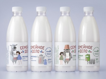 В дизайне использована серия иллюстраций, решенных в теплой и немного наивной манере. Главными героями графических зарисовок стали девочка и корова, которая из категорийного персонажа здесь превратилась в настоящего члена «молочной семьи». Так упаковка помогла наполнить новый бренд теплотой, сделать ценности фермерского образа жизни ближе для российских потребителей.