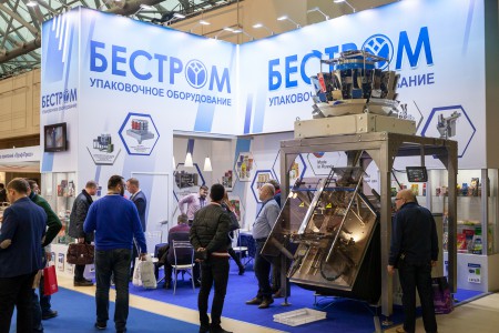 Конкуренция наблюдалась и в вертикальных (VFFS) машинах с наклонным расположением трубы-рукавообразователя, предназначенных для упаковывания хрупких, требующих деликатного обращения продуктов. Фасовочный автомат, состоящий из упаковочной машины Бестром-400Н и комбинационного дозатора Multipond, демонстрировался на стенде предприятия «Бестром». Производительность по машине – до 55 пак/мин.