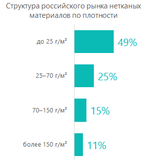 По оценке экспертов, рынок нетканых материалов в основном сформирован предложениями отечественных производителей. По итогам 2019 года объемы производства российскими предприятиями превышали импортные поставки в 2,7 раза.