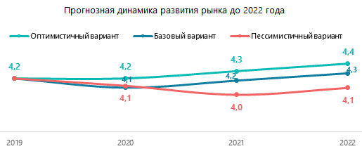 По оптимистичному прогнозу в 2022 году объем рынка вырастет на 5% по отношению к показателям 2019 г. и составит 4,4 млн тонн. Сценарий учитывает сохранение прежних темпов роста за счет увеличения экспортных поставок.