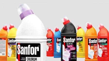 Московское брендинговое агентство , объединяющее профессионалов в областях брендинга, нейминга, дизайна упаковки и SMM разработало новую концепцию и дизайн этикеток для линейки чистящих средств Sanfor WC.