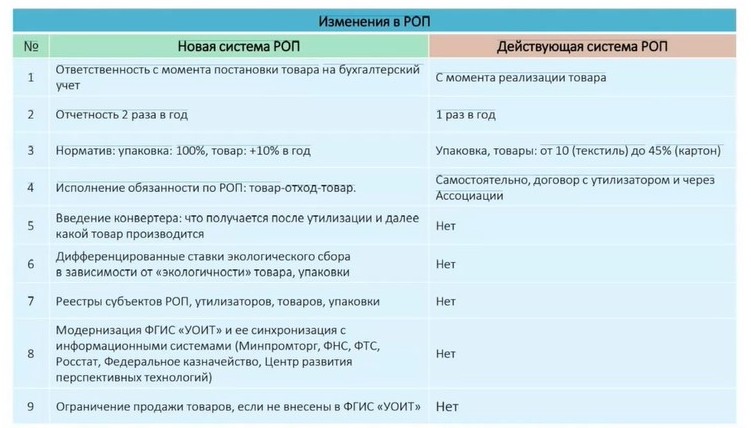 РОП предполагает, что утилизация отходов от использования товаров – дело рук производителей и импортеров этих товаров. Они могут самостоятельно создать инфраструктуру по сбору и переработке отходов, то есть утилизировать упаковку самостоятельно. Второй вариант: производители и импортеры заключают договор с организацией, занимающейся утилизацией. И третий вариант: они платят за утилизацию. О реформе механизма расширенной ответственности производителей говорят уже с 2019 г. Сейчас речь идёт о переносе ответственности за утилизацию упаковки на ее производителей.