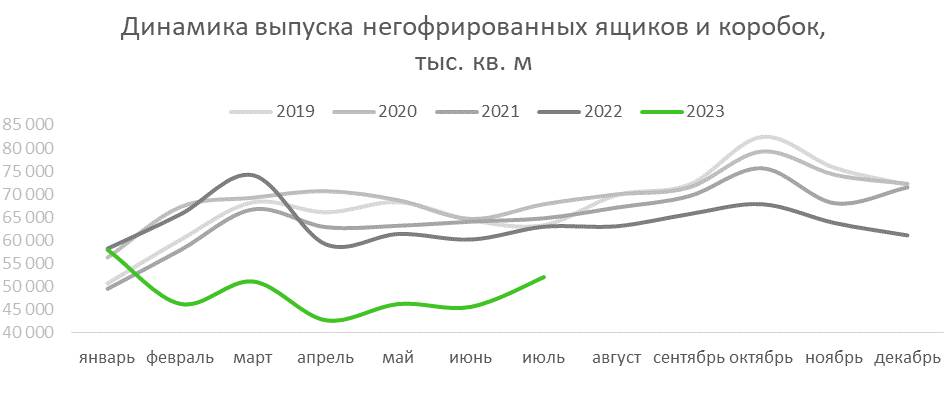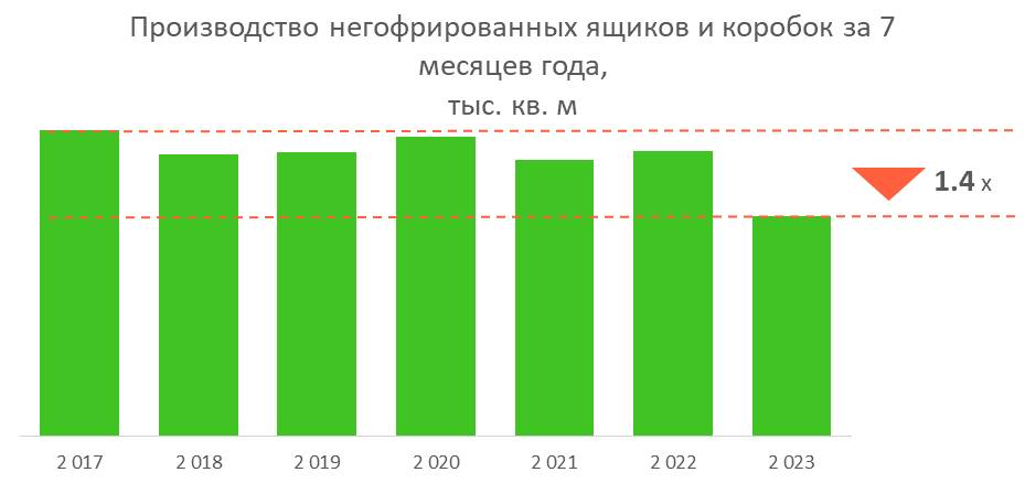 Выпуск негофрированных коробок сократился на 23%: итоги 7 месяцев 2023 г.
