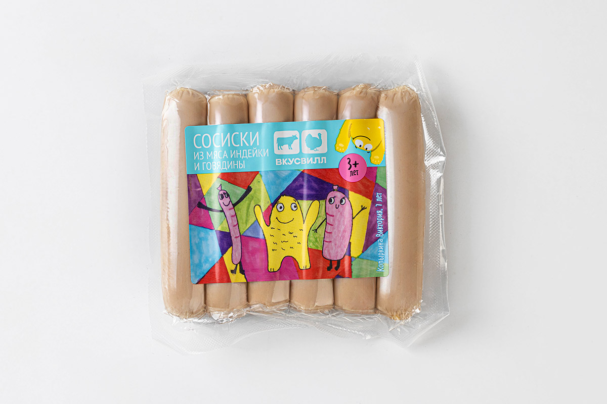 В преддверии Дня защиты детей ВкусВилл выпустил обновленные упаковки для сосисок, колбасок и сарделек. Их дизайны были разработаны маленькими покупателями в рамках творческого конкурса. Теперь на упаковках некоторых мясных продуктов можно встретить жирафика, котят, дракончика, Фудика, ёжика и других.