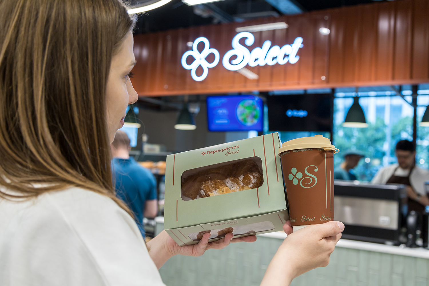 Одной из главных отличительных особенностей новой концепции «Перекрёстка» является кафе Select, где представлена готовая еда под одноимённой собственной торговой маркой. Кафе появятся в каждом супермаркете новой концепции: в новых торговых объектах Select будет размещен у самого входа, а в действующих «Перекрёстках» — вместо неиспользуемых касс. Решение о его создании обусловлено стремительно развивающимся трендом на симбиоз сегмента HoReCa и ритейла. Кафе Select соответствует уровню «большой тройки» ресторанов быстрого питания и другим сетям аналогичного формата и включает в себя блюда «из-под ножа» наряду с другими изысканными позициями, которыми можно насладиться прямо в супермаркете. В кафе также установили модуль «Много Лосося» с широким выбором пиццы и суши.