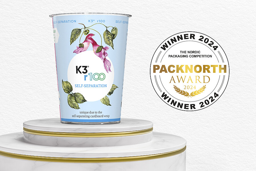 Пластиковый стаканчик K3® r100 от Greiner Packaging, заключенный в элегантную картонную обертку, был удостоен престижной премии Packnorth Award 2024. K3® r100 отличает его инновационный дизайн, который позволяет материалам автоматически разделяться в процессе переработки, гарантируя, что и картонные, и пластиковые компоненты могут быть эффективно отсортированы и переработаны. Упрощая процесс переработки, стаканчик K3® r100 является образцом экологически устойчивых инноваций для одноразовых продуктов.