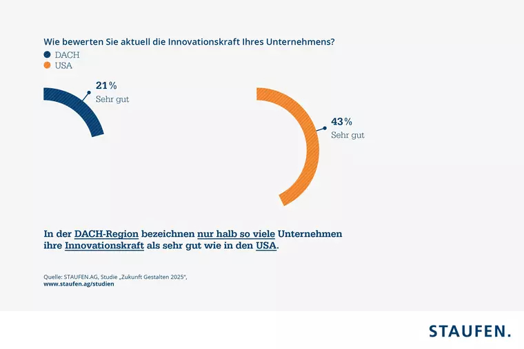Текущее отраслевое исследование «Формирование будущего» („Zukunft gestalten“), проведенное международной консалтинговой компанией Staufen, демонстрирует разительную разницу в подходе промышленных компаний из США по сравнению с предприятиями из региона DACH (Германии, Австрии и Швейцарии). В то время как американские компании смотрят в будущее с большей уверенностью, их коллеги в регионе DACH сталкиваются с большими проблемами.