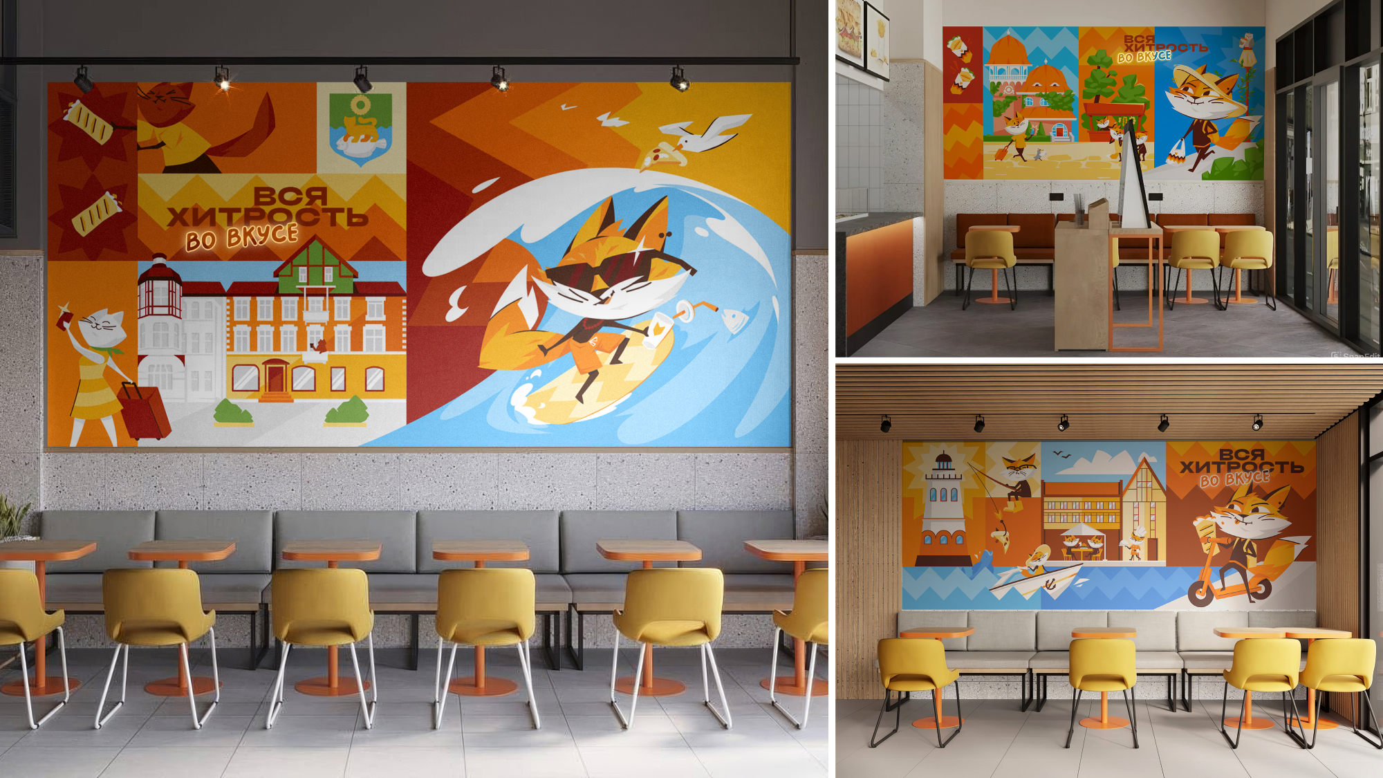 Лис присутствовал в айдентике и раньше — он встречался на граффити и в декоративных элементах заведений. Но теперь персонаж стал полноценным героем городской гастрокультуры.