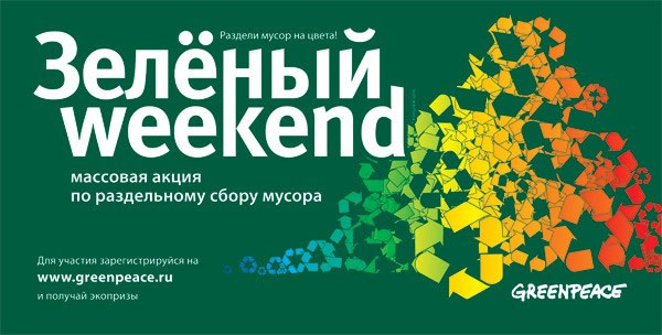 В лотерее также смогут принять участие все, кто сдал на переработку мусор 1 октября на мобильные пункты Гринпис. Весь день по городу будут курсировать газели с фирменным лого зеленого weekend’a.