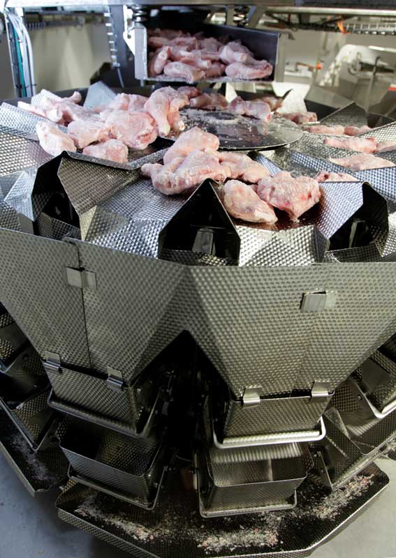 Еще одним важным преимуществом весового дозатора Ishida является использование шагового электродвигателя, который гарантирует бесперебойную работу при низких температурах, при упаковке замороженных продуктов. Прочная конструкция делает возможной надежную работу в самых сложных условиях при обработке замороженных тушек, особенно с костями; а гидроизоляция успешно справляется с потоками воды, постоянно проходящими через оборудование.