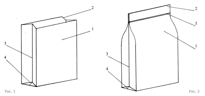 На рис.1 изображён внешний пакетик (1) с открытой горловиной (2) с боковым (3) и донным расширением (4).