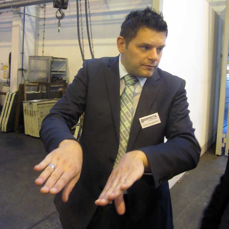 Экскурсию по цехам Perfecta для гостей Open House провел Ронни Нойгертнер (Ronny Neugärtner), руководитель отдела продаж компании Perfecta. Он рассказал, что 80% всех используемых в производстве резального оборудования механических деталей и узлов изготавливается непосредственно на заводе в Баутцене.