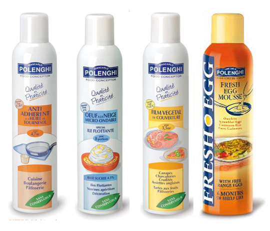 Компания Polenghi-Coltivia поместила яйца в аэрозольный баллон. Продукт доступен в упаковке объемом 300 г (что эквивалентно порции из шести яиц), а упаковка оснащена таким же диспенсером, который используется для дозирования взбитых сливок. Инновационная технология от Lindal Group позволяет дозировать яйца в виде мусса, после чего они быстро принимают привычную форму.