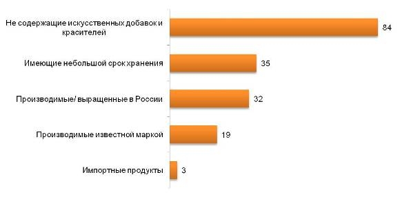 Более половины жителей российских городов заявляют о своей готовности платить дороже за экологически чистые продукты. Вместе с тем чуть более четверти респондентов, наоборот, отвечают, что не могут себе позволить тратить больше денег на продукты, какого бы качества они ни были. Покупая продукты, россияне, в первую очередь, обращают внимание на состав ингредиентов и цену. Страна-производитель и марка не так важны. Качественными четверо из пяти участников опроса назвали продукты, не содержащие искусственных добавок и консервантов.