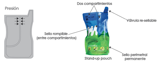 В прошлом году я написал несколько статей о дозирующих колпачках для пластиковых или стеклянных бутылок. Преимущества раздельного хранения ингредиентов, я полагаю, хорошо известны. Наиболее очевидное из них – это увеличение срока годности смешиваемых продуктов, которые после смешивания не являются устойчивыми или быстро портятся. Я предвидел внедрение подобных систем для гибкой упаковки, так как она становится одним из важнейших форматов упаковки. И вот мы в Мексике, в которой компания Simonalbag S.A. в сотрудничестве с DuPont запатентовала Mixpack.