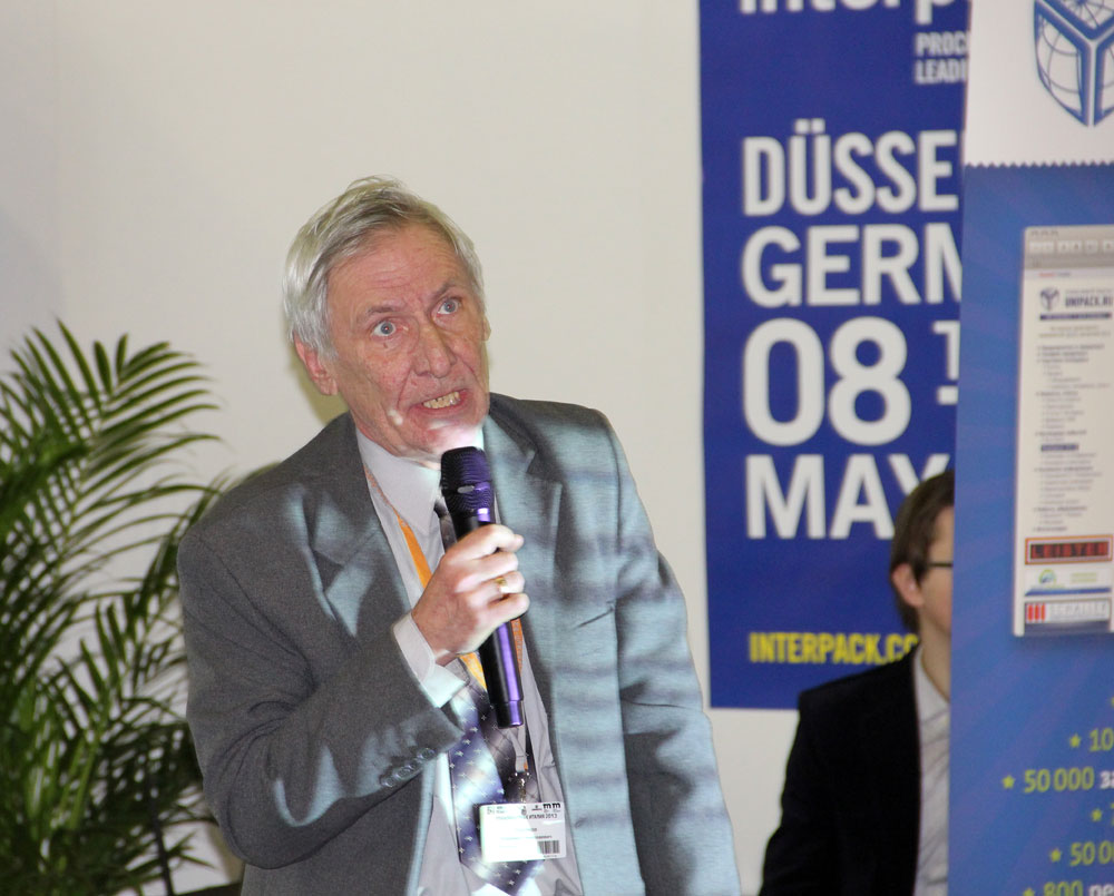 Среди выступавших на круглом столе были ректор МГУ печати им. Ивана Федорова К. В. Антипов, заведующий кафедрой инновационных технологий и управления того же вуза профессор Е. Б. Баблюк. редактор журнала «Тара и упаковка» И. Н. Смиренный, Г. К. Хмелевский, который, по существу, представлял и образование (как преподаватель), и производство (как исполнительный директор ассоциации «Пакмаш»), заместитель завкафедры РЭУ им. Плеханова профессор Т. И. Чалых и другие, в том числе автор этих строк.