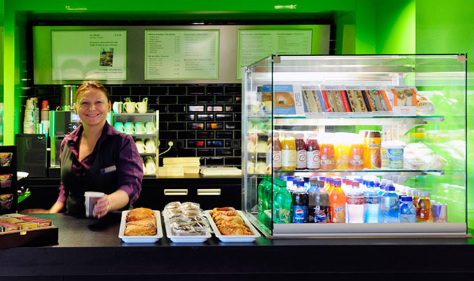 В большинстве заведений касса находится у витрины. Некоторые сетевые заведения используют зону прикассового пространства по примеру супермаркетов. Разумеется, в таких заведениях часто вся витрина размером с зону прикассового пространства сетевого магазина. Однако сам принцип работает. Суть его заключается в том, чтобы предложить покупателю какое-то «готовое решение» в тот момент, когда он уже собирается расплачиваться.