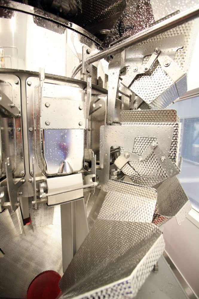 Мультиголовочный весовой дозатор Ishida CCW-RV обеспечивает высочайший уровень точности взвешивания, стабильность работы и стремящиеся к нулю потери продукта. В дополнение ко всему перечисленному, скорость его работы на 15% выше, чем у предыдущей серии. Подобные технические характеристики были достигнуты благодаря использованию чувствительных блоков управления радиальными фидерами, что обеспечило более быструю и плавную подачу продукта.