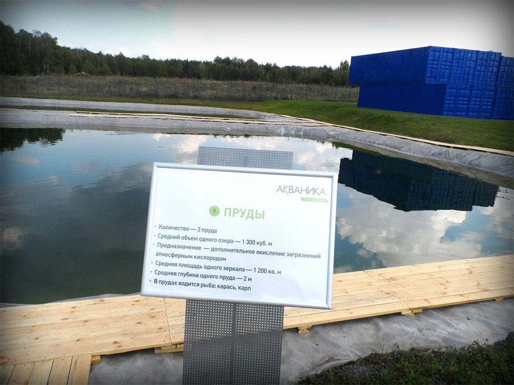Качественной натуральной продукцией, конечно, можно и нужно гордиться. Но предметом особой гордости в «Акванике» являются очистные сооружения. Как подчеркивает Владислав Глаголевский, в процессе производства используется значительное количество моющих средств – кислот и щелочей. Их применяют для промывания оборудования. Все эти средства удаляются в канализацию и затем очищаются. Отдельный домик на территории завода содержит эти самые очистные сооружения и систему управления очисткой сточных вод. Виктор Катерный открывает люки, в которые можно заглянуть: в одном резервуаре все то, что поступает с завода после промывки оборудования, в другом – уже очищенная вода, вполне прозрачная. Управление системами очистки осуществляется автоматически. По словам Владислава Глаголевского, воду, прошедшую очистку в заводских очистных сооружениях, можно даже пить. Вода очищается до такой степени, что в ней могут жить рыбы, что наглядно демонстрируют расположенные поблизости три пруда, каждый объемом 1300 кубов. В них водятся караси и карпы. Кстати, после экскурсии по заводу любители порыбачить из числа журналистов смогли этим заняться, выловив из прудов немало рыбин, которых тут же и отпустили обратно в воду. Речь не идет о подсобном рыбном хозяйстве завода. Рыба в прудах – индикатор качества воды.