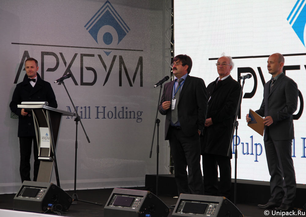 От лица дочерней компании — ОАО «Архангельский ЦБК» выступил Председатель Совета директор АО Д-р Хайнц Циннер. «Сегодня мы присутствуем на открытии нового завода Архбум, который, уверен, придал новый импульс развитию наших предприятий, — отметил он. — Наша команда всегда работала на развитие. В течение пятнадцати лет общий объем инвестиций в нашу группу компаний составил 800 млн. долларов, а впереди у нас много планов».