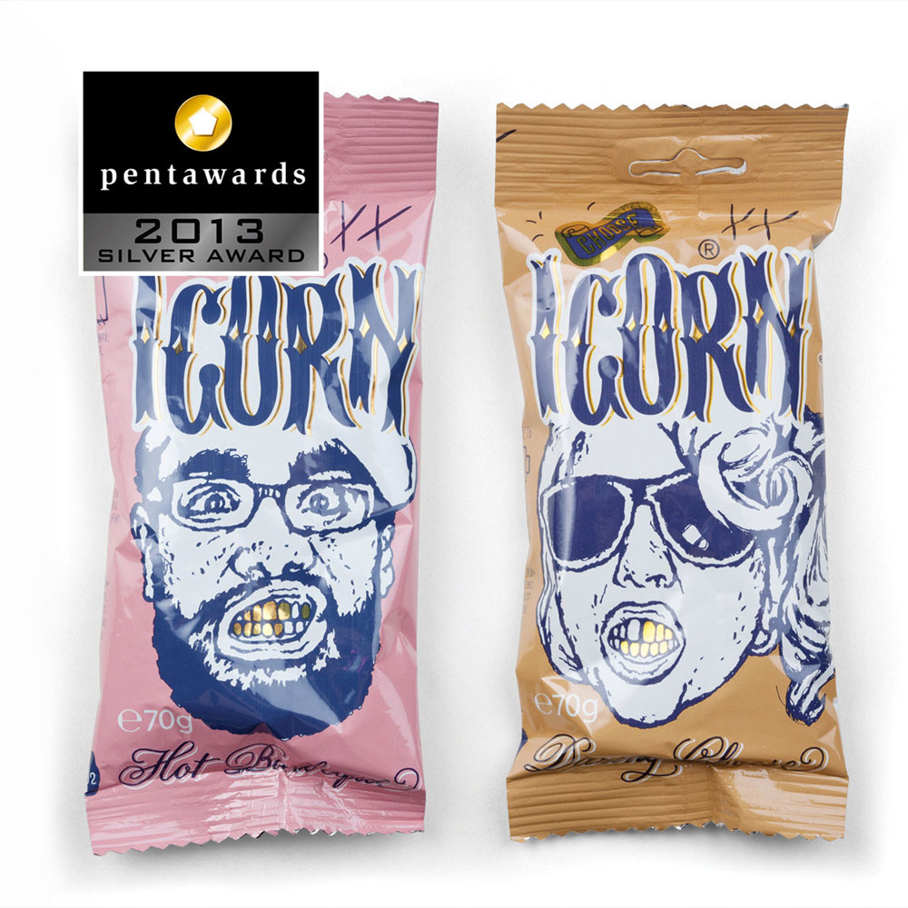 Еще одна разработка агентства Depot WPF, удостоенная серебряной награды Pentaward, — это линейка снеков iCorn.