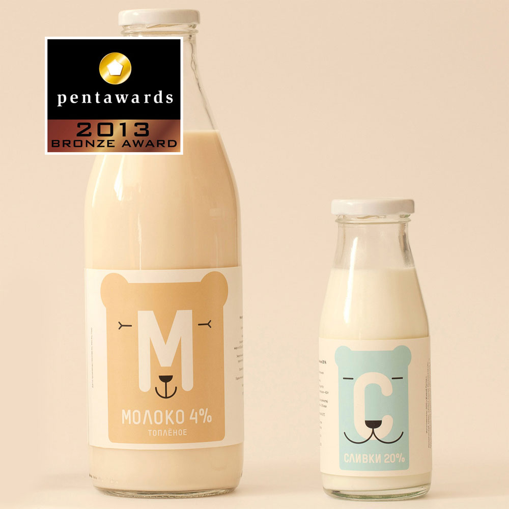 «A-Молоко» — ведущий реселлер молока в России, использующий автоматизированную систему продаж — молочные автоматы. Внешний дизайн бутылки молока выполнен агентством «Ермолаев Бюро».