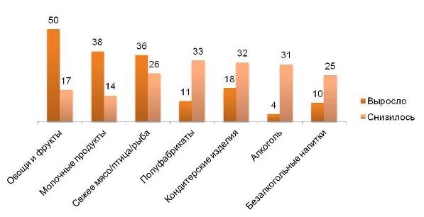 В то же самое время треть тех, у кого произошли изменения в корзине, говорят о сокращении потребления замороженных полуфабрикатов, кондитерских изделий и алкогольных напитков, включая пиво. А о росте потребления по этим категориям завили только 4-18% из числа, изменивших свою корзину.