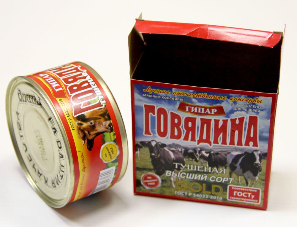 Вопрос: а что такое «Гипар»? Это торговая марка? Тогда почему она не фигурирует в пользовательской информации, где черным по белому (точнее, черным по разноцветному) написано: «Консервы мясные “Говядина высший сорт”». И больше ничего. Никакого «Гипара».