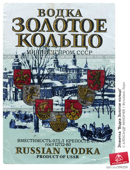 Гербы древних городов использованы и в оформлении водки «Золотое кольцо». Путешествие по старинным городам, как и карта Кавказа и его черноморского побережья на пачке папирос Intourist, – это уже приглашение в поездку, в круиз.