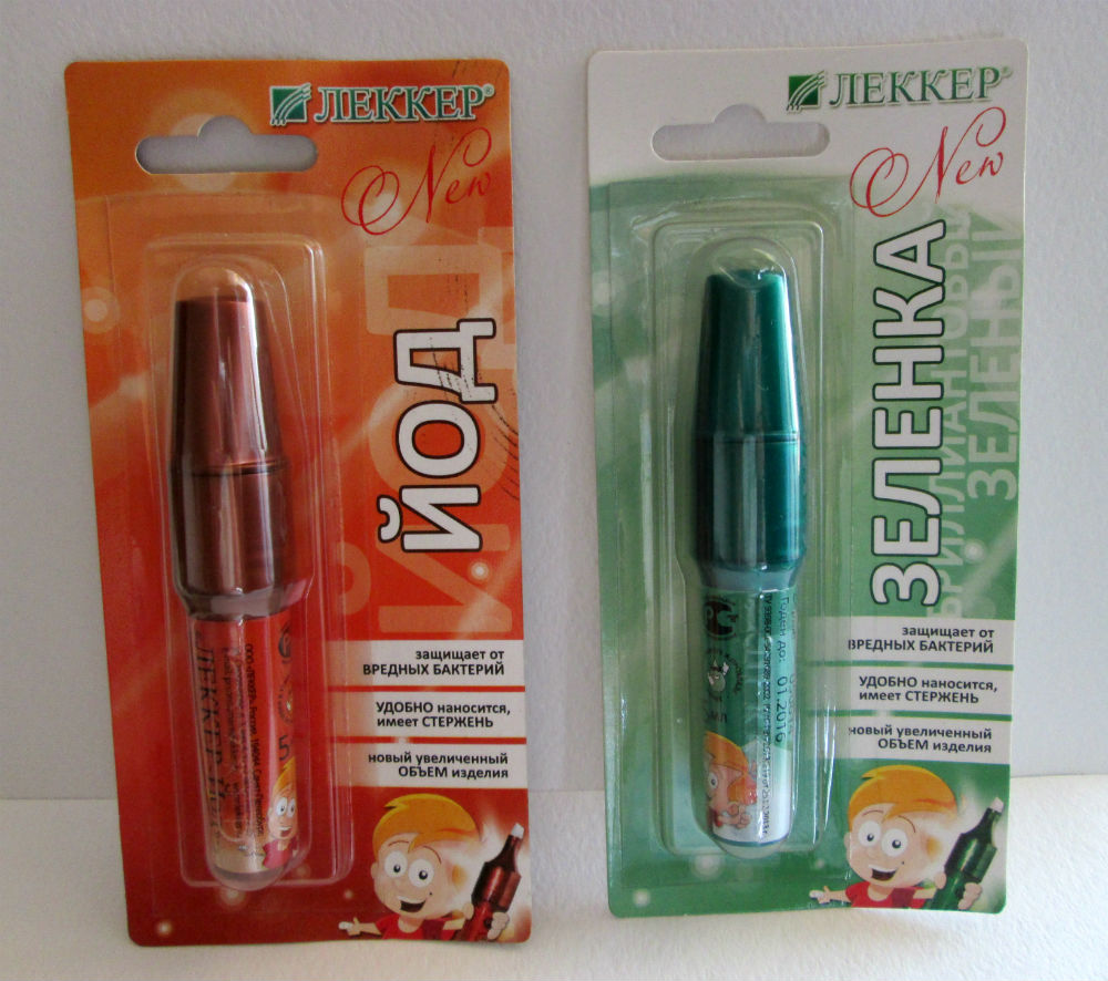 В современных московских аптеках йод и зеленка редко выставляются на витрину, поэтому увидеть наших сегодняшних героев в прямом противостоянии с «противниками» нам не удалось. И все же сам за себя говорит такой факт: услышав о существовании подобного рода продукта, автор отправил свою «выездную бригаду», состоящую из супруги и дочери, в аптеку.