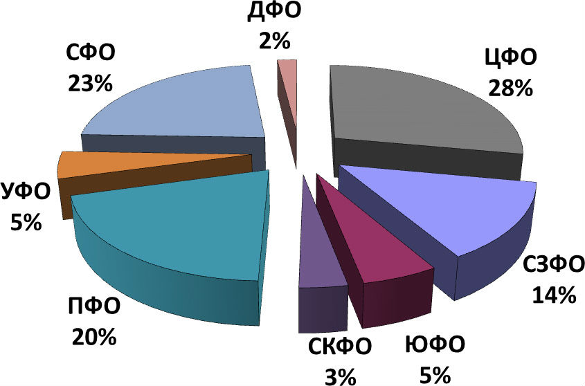 Необходимо отметить, что суммарная доля ЦФО и СФО составляет 51%. Это позволяет говорить о том, что основная часть производства мороженого сосредоточена в европейской части России.