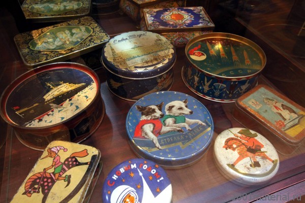 Впрочем, замешанное на ностальгии оформление новогодней продукции сейчас уже и так активно используется. Вот современная жестяная коробка для кондитерских изделий: на ней все «по-советски»: и Дед Мороз в ракете, и изображение конфет, знакомых с детства: