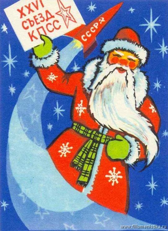 И вот в таком наборе, посвященном 1981 году, на одной из этикеток изображен удивительно партийный Дед Мороз, напоминающий о предстоящем съезде КПСС: