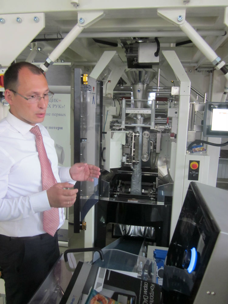 Денис Козлов, региональный менеджер Ishida Europe по продажам в России и СНГ, с увлечением рассказал об упаковочной линий, построенной в демонстрационном зале.