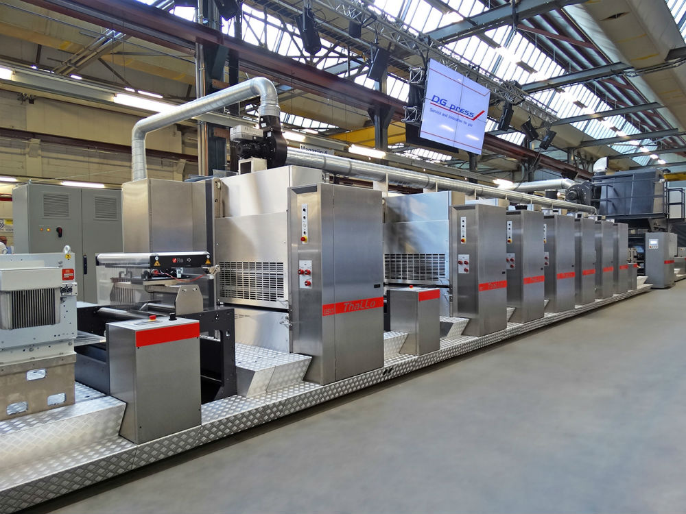 Посетители стенда голландской фирмы DG press увидят новую рулонную гибридную офсетную печатную машину Thallo, предназначенную для выпуска пленочной этикеточной продукции и гибкой упаковки. Машина поставляется с вариантами ширины полотна 520, 850 и 1050 мм. Для смены длины печати используются гильзы различного размера. При этом, на валы могут устанавливаться формные гильзы с хорошо известных офсетных машин Müller Martini VSOP. И другой важный момент: на Thallo предусмотрено применение сушек двух видов: UV и EB (Electron Beam). Последний особенно важен, когда речь заходит о печати на пищевой упаковке.